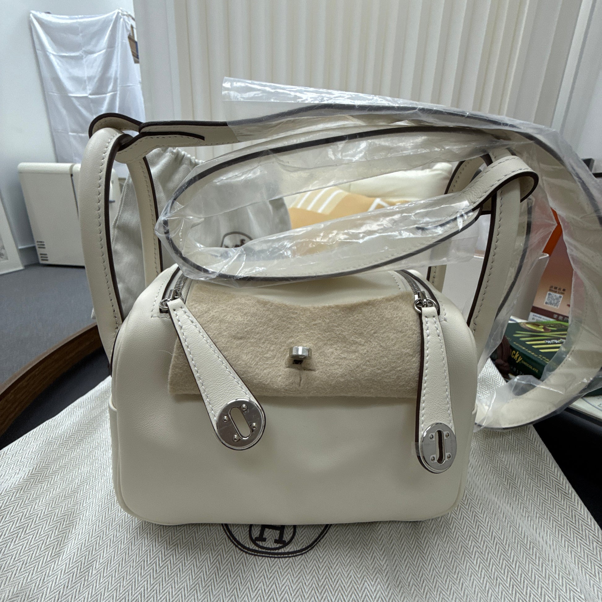 Hermes Mini Lindy Swift Verso Nata x Sesame Silver Metal Fittings PHW Stamp B Brand new